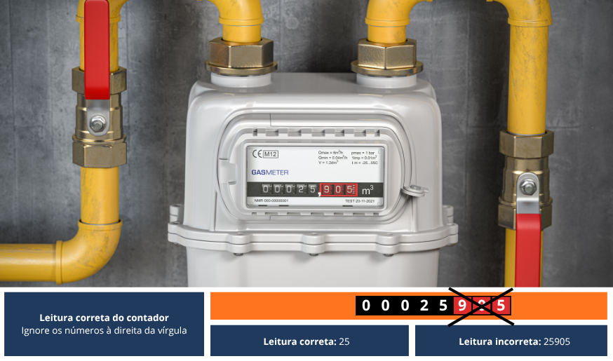 - Confirme o contador que lhe está atribuído através do respetivo número que consta na sua fatura e/ou identificado na sua área de cliente.